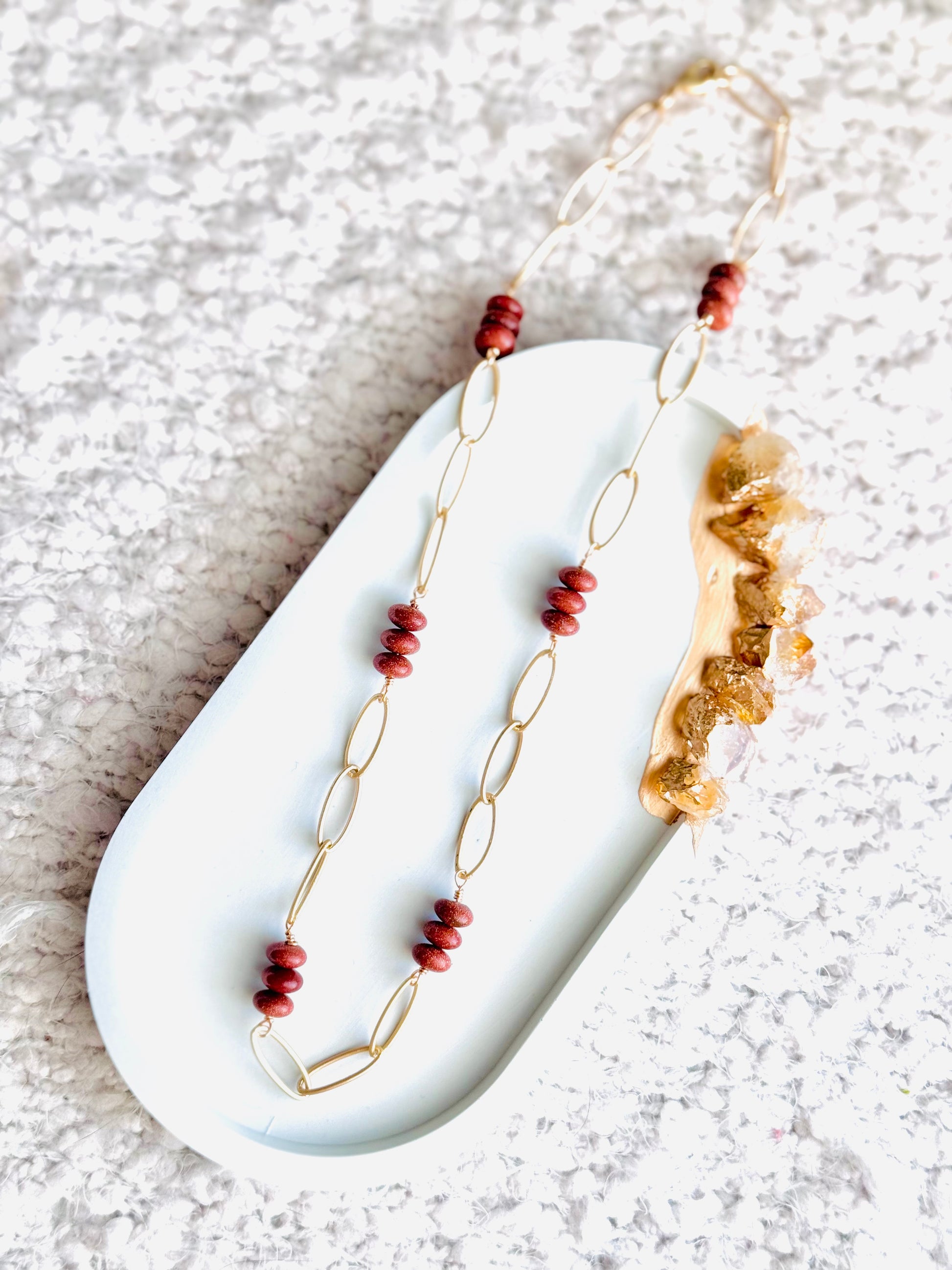 Goldstone + Matte Gold Chain Necklace