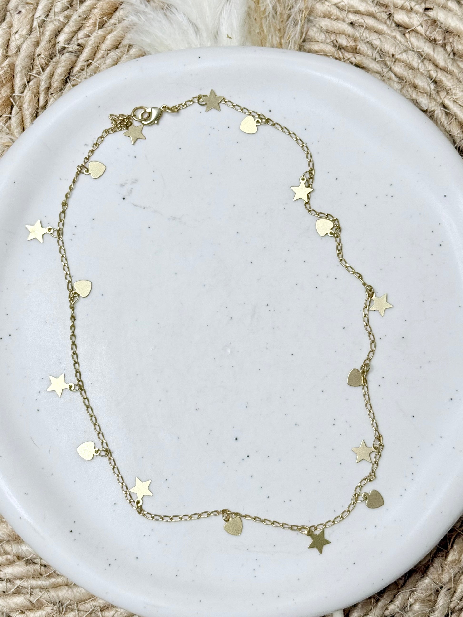 Heart + Stars Matte Gold Sequin Chain Necklace