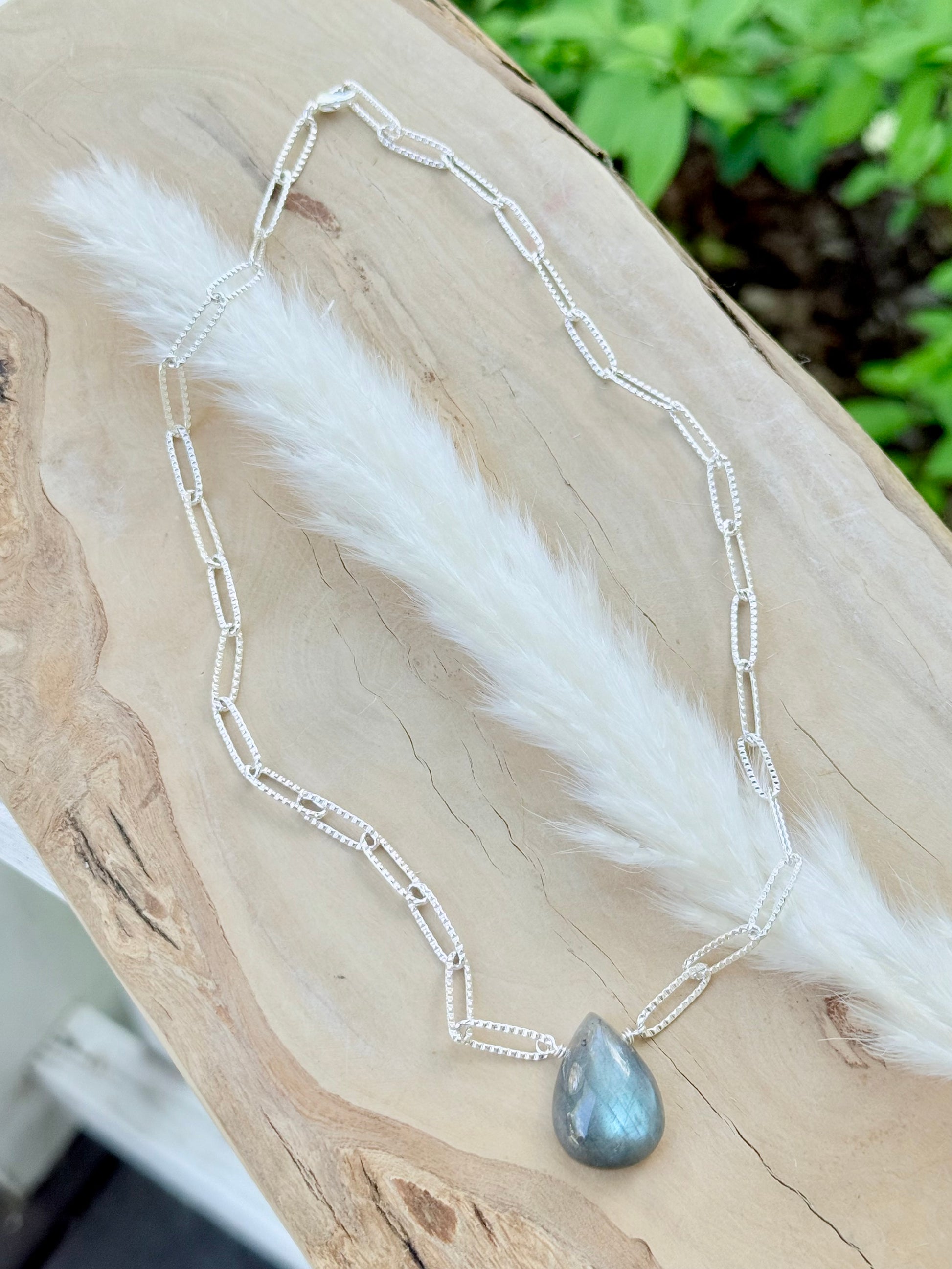 - Includes a hand-wrapped high-grade labradorite pendant with lots of blue flash