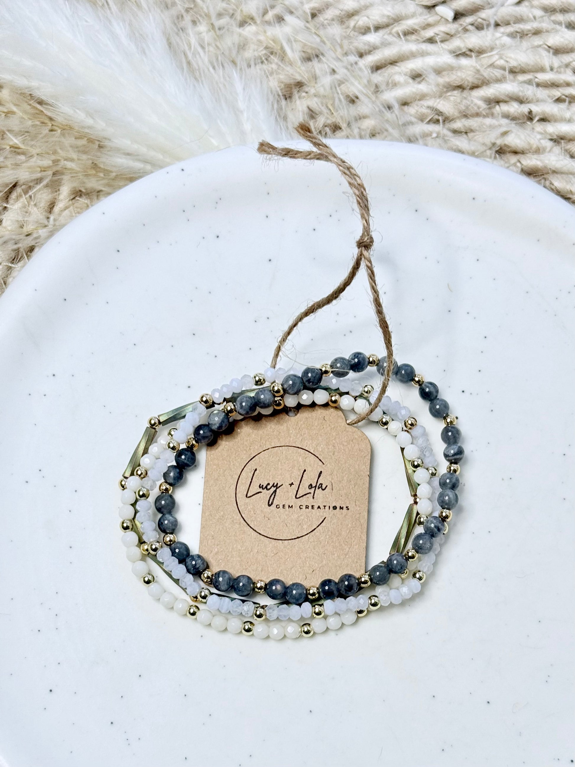 Lace Agate + Labradorite in Gold Stack (4-stack)