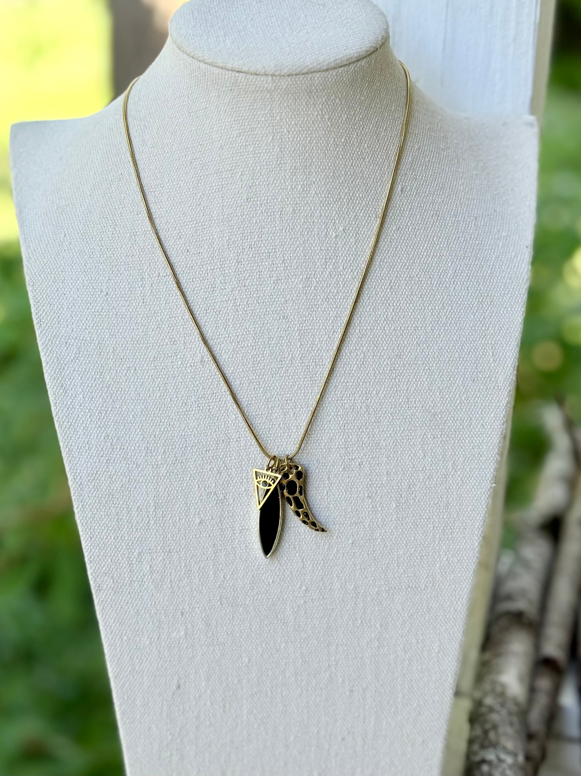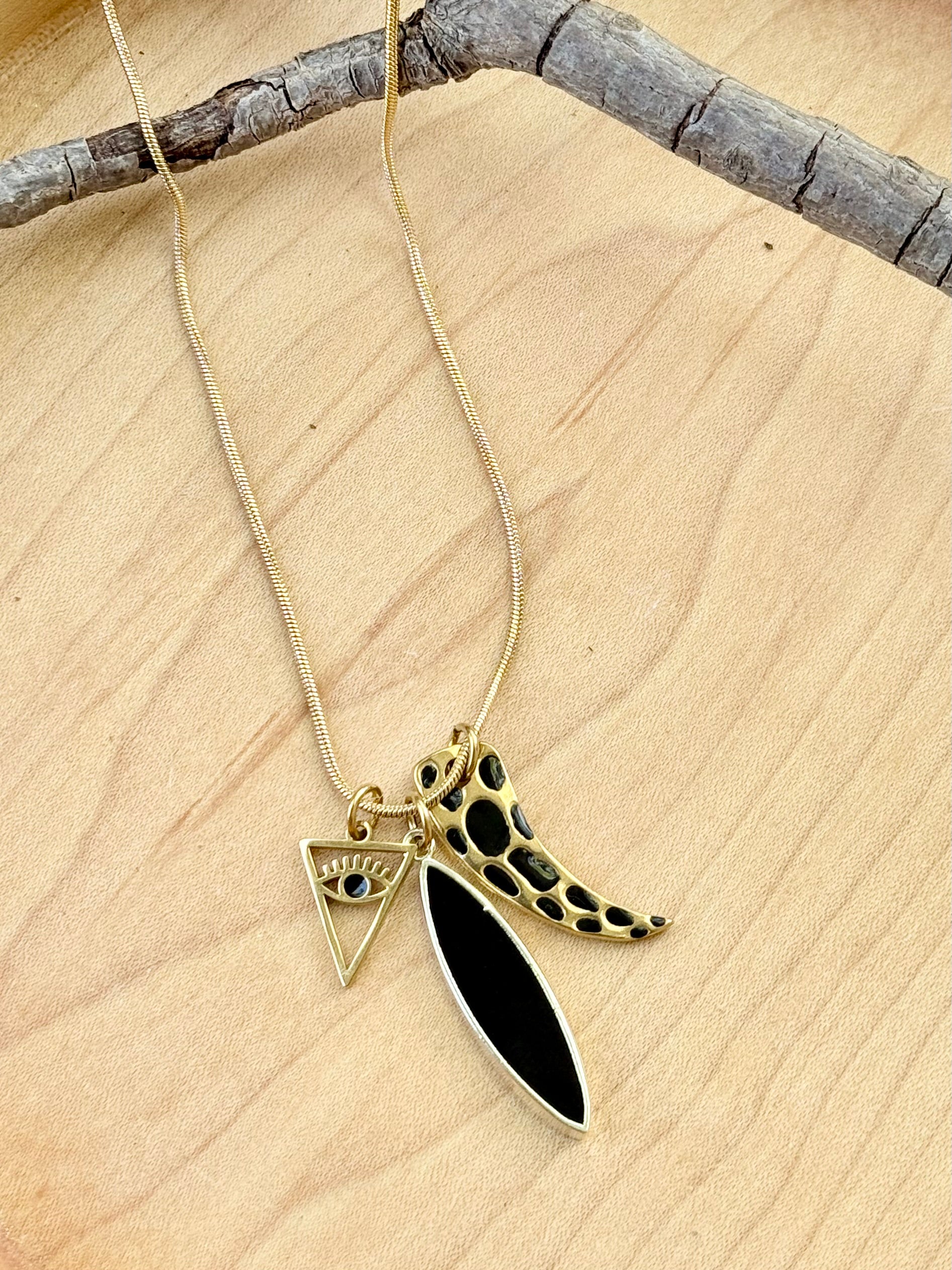 - Includes a black onyx pendant and 2 gold stainless steel charms