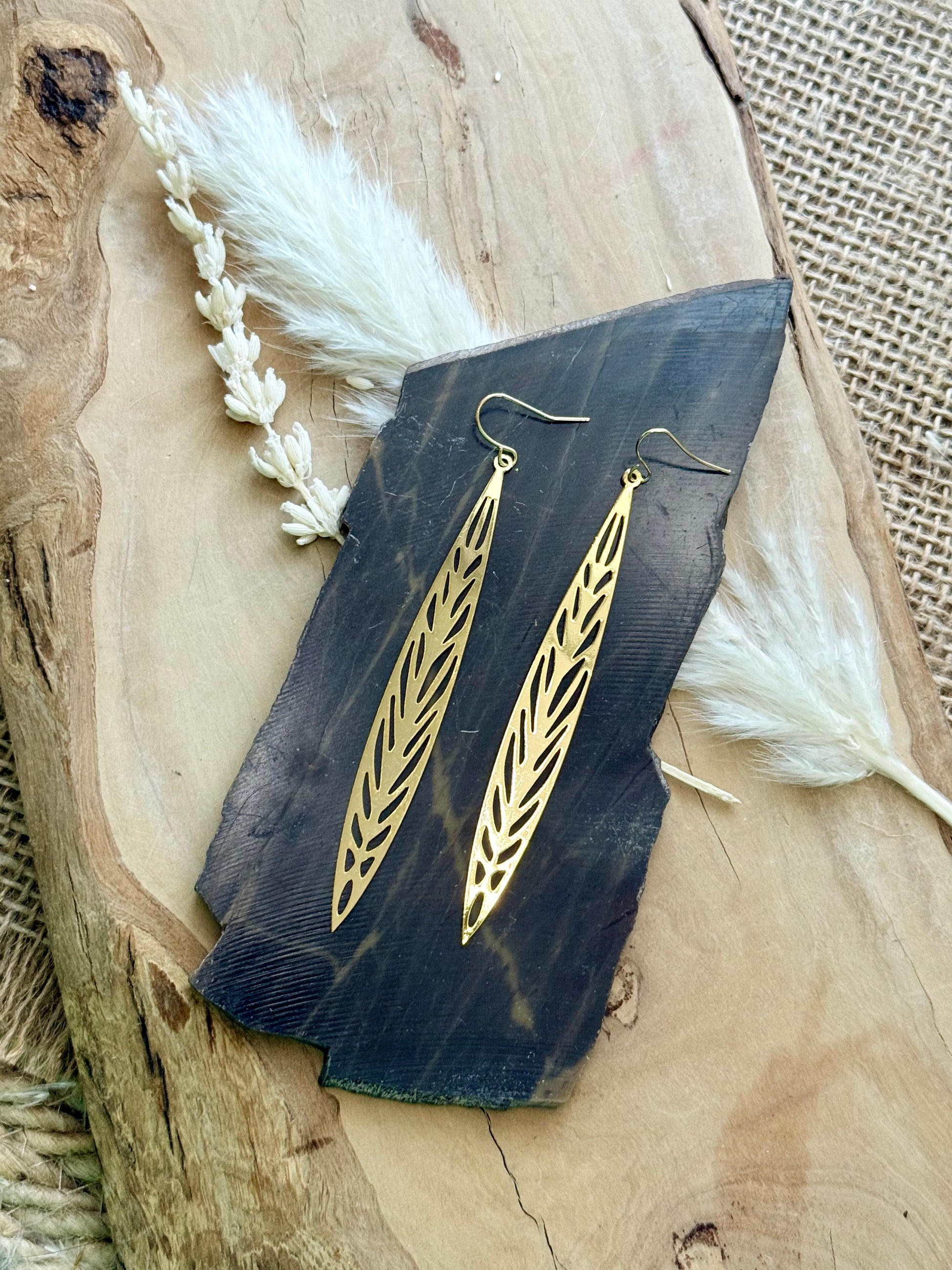 Long + Skinny Gold Leaf Earrings