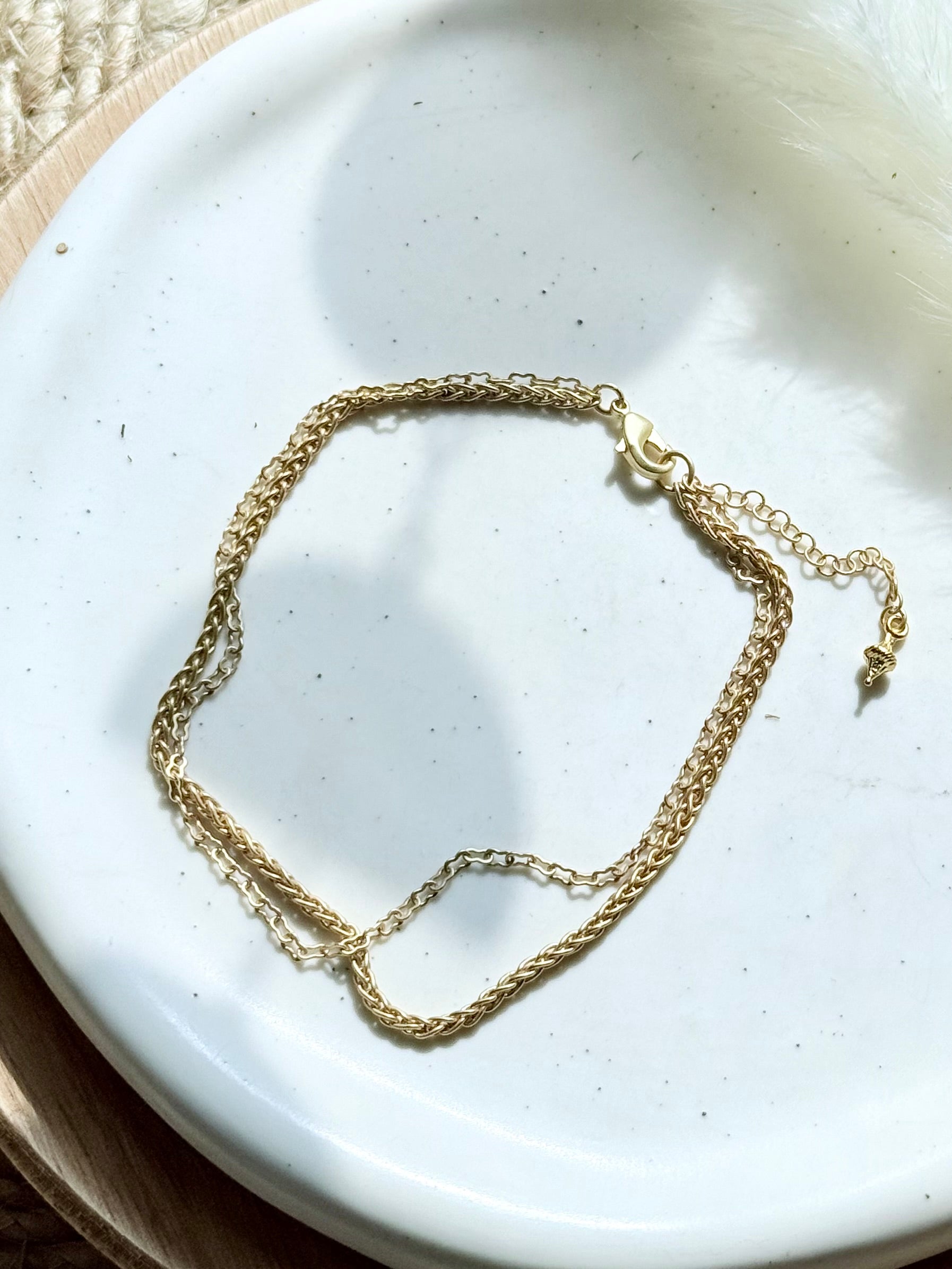 Matte Gold Duet Anklet (Wheat + Peanut Chains)