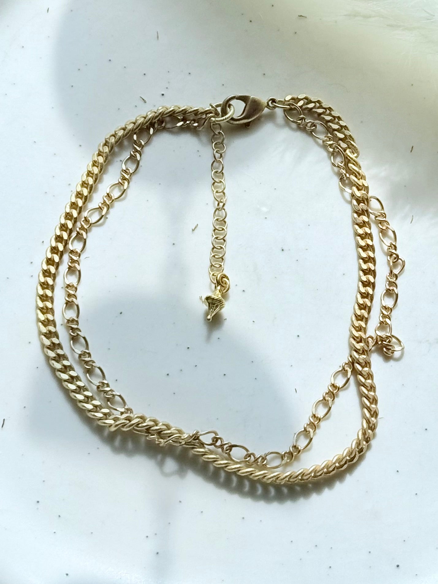 Matte Gold Duet Anklet (Twisted Figaro + Curb Chains)