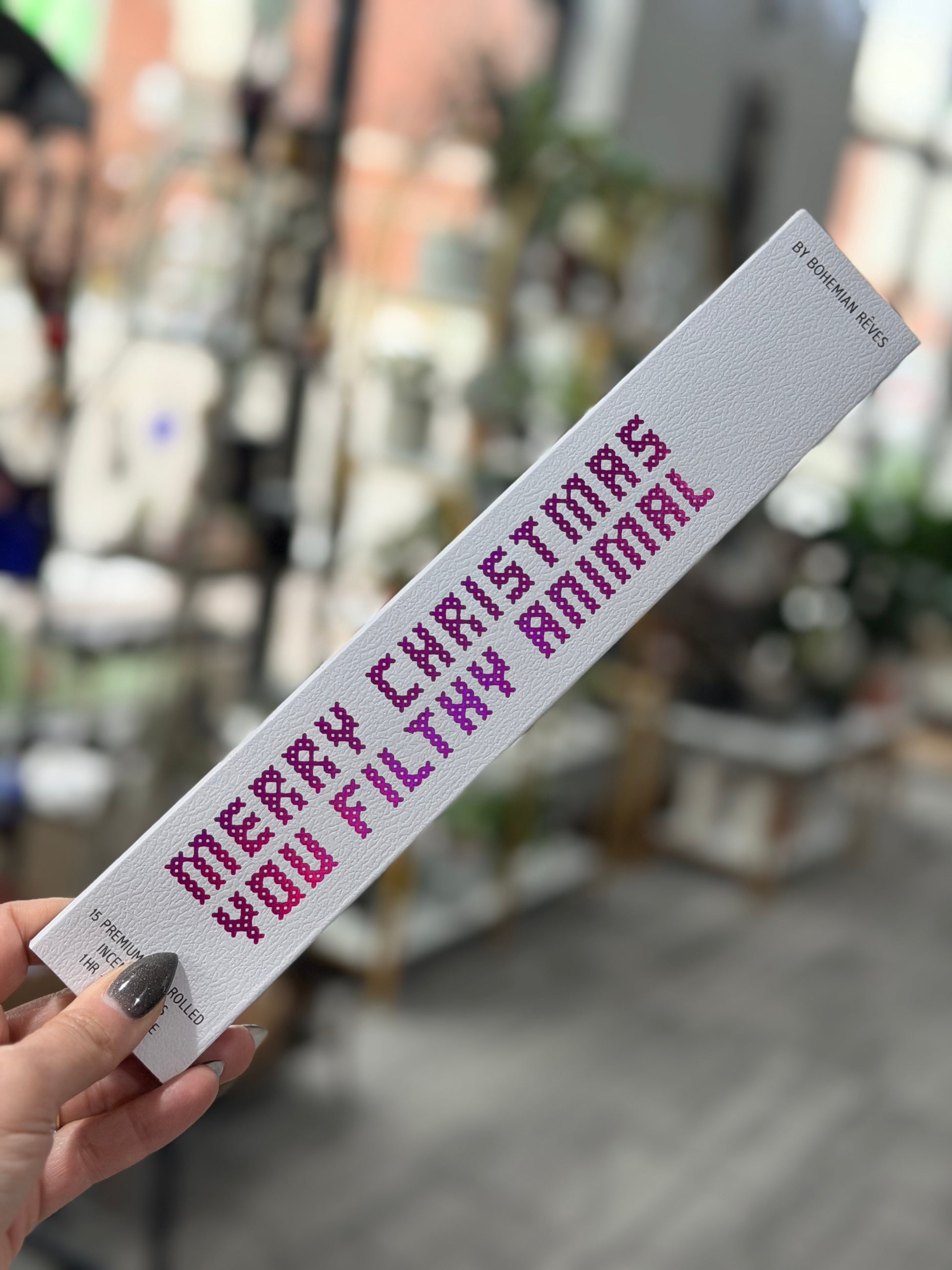 Transform your holiday experience with the Merry Christmas You Filthy Animal Hand-Rolled Winter Incense Sticks from Bohemian Rêves. This luxurious incense offers a unique blend of festive fragrances that will fill your space with warmth and cheer, perfect for embracing the holiday spirit. Each stick burns for an impressive 75 minutes, releasing clean-burning aromas infused with delightful notes of spiced pear, tonka bean, cinnamon, amber, clove, and apple cider. Light it up during gatherings, cozy evenings by the fire, or quiet moments of reflection.
