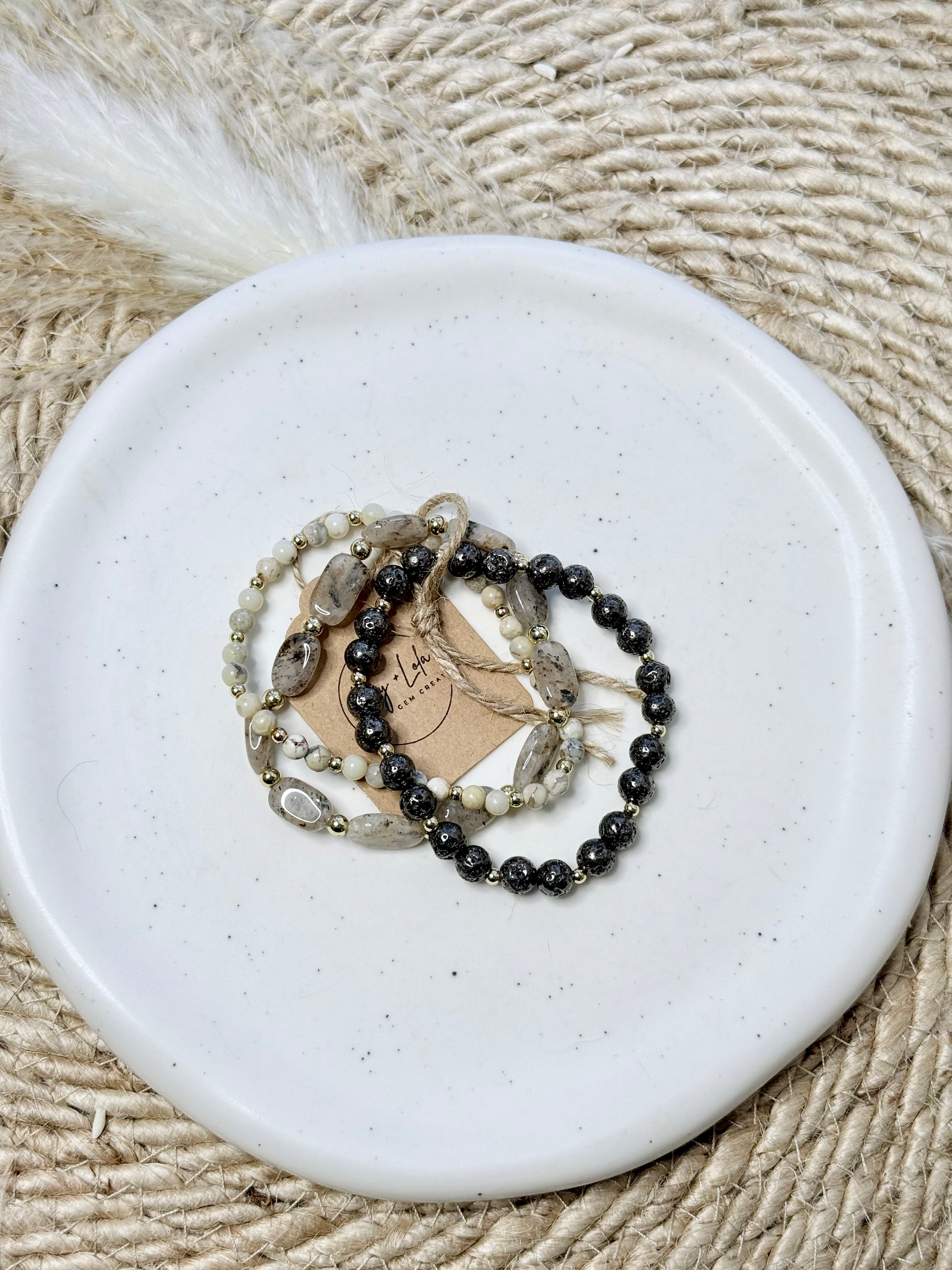 Moss Quartz + Opal in Gold Stack (3-stack)