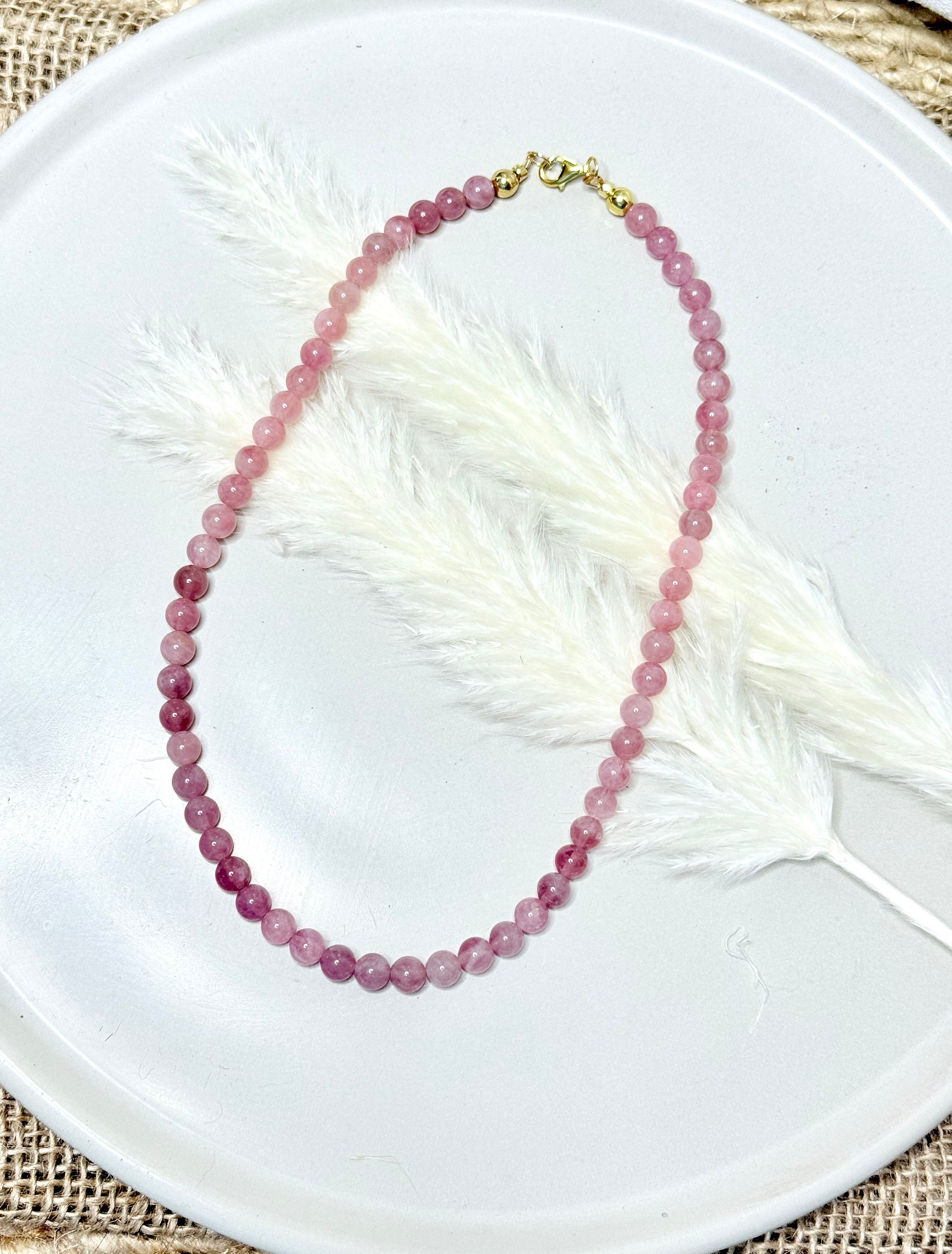 Mozambique Rose Quartz + Gold Beaded Necklace