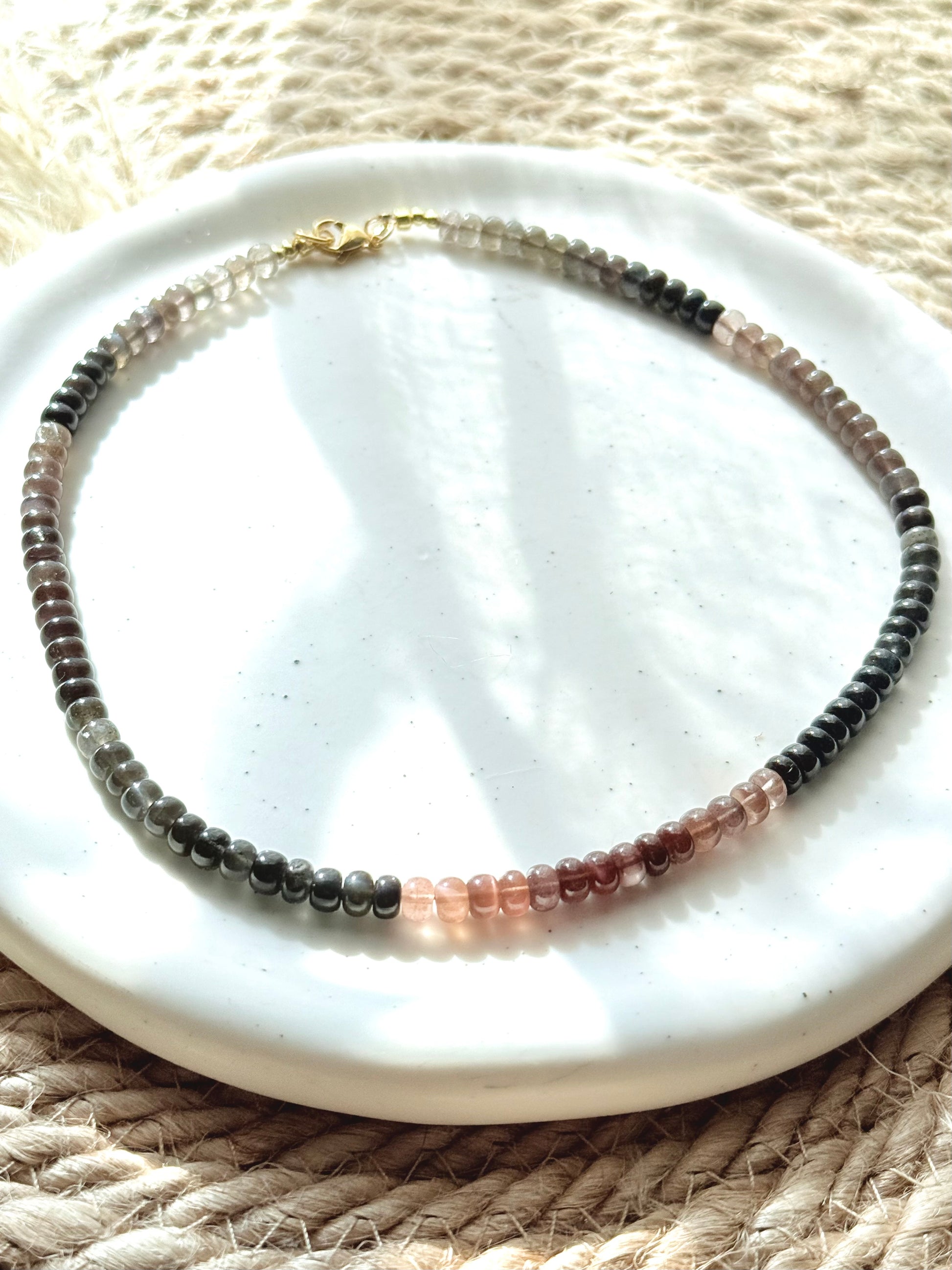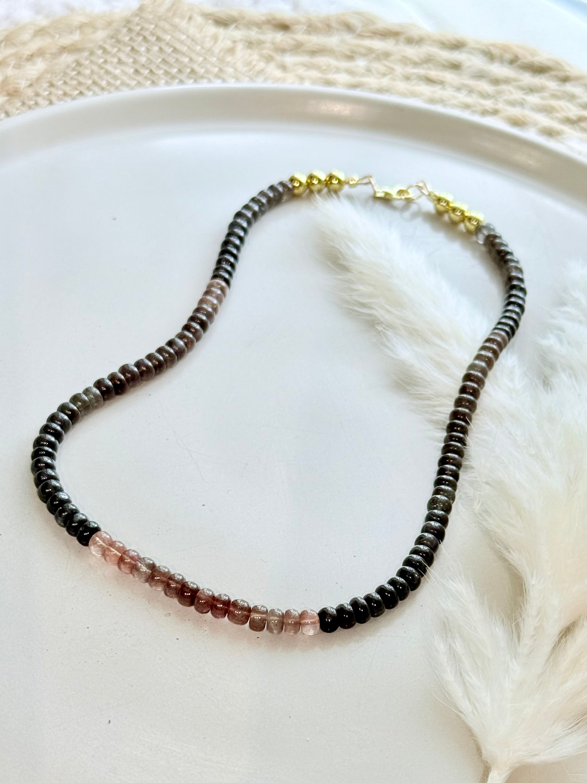 Neutral Chrysoberyl + Gold Beaded Necklace
