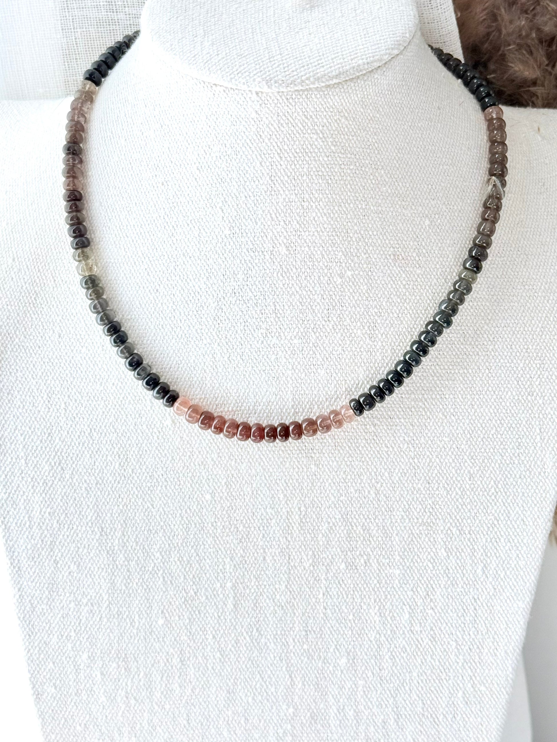 - Stunning, neutral tan, black and brown chrysoberyl gemstones, with gold filled spacer beads