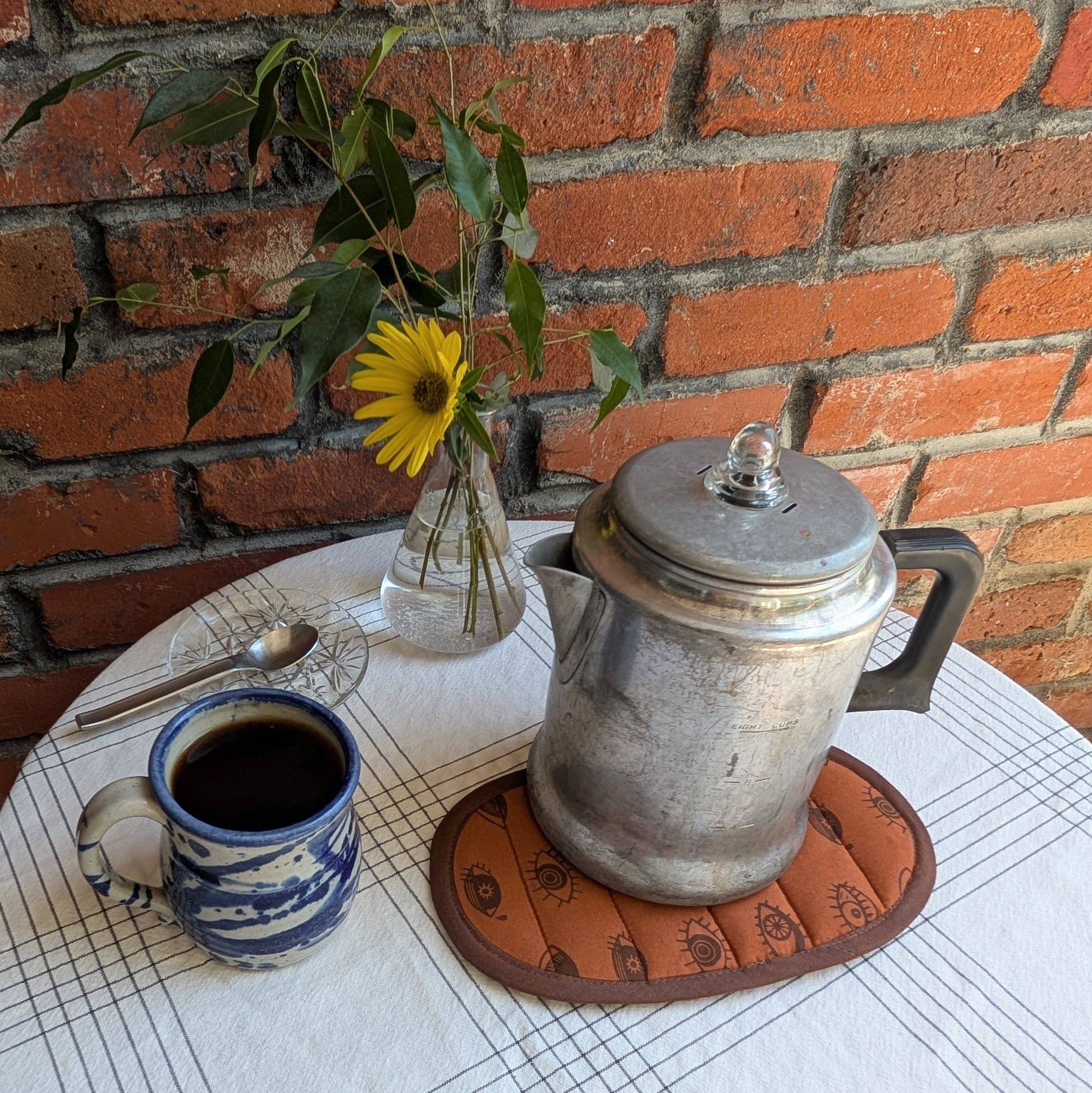 - A hand-screenprinted premium cotton pot holder