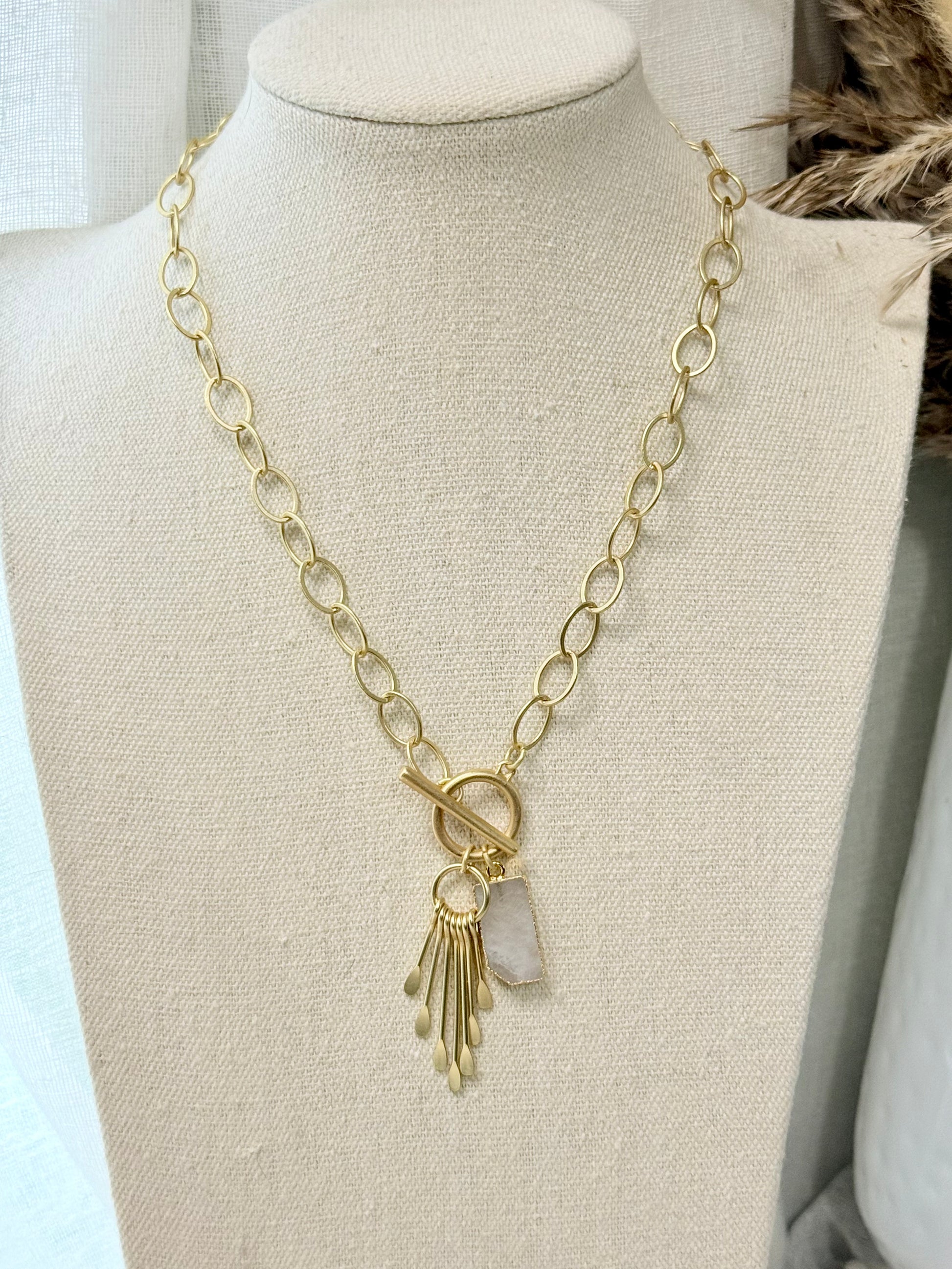 Rainbow Moonstone + Gold Charm Toggle Necklace