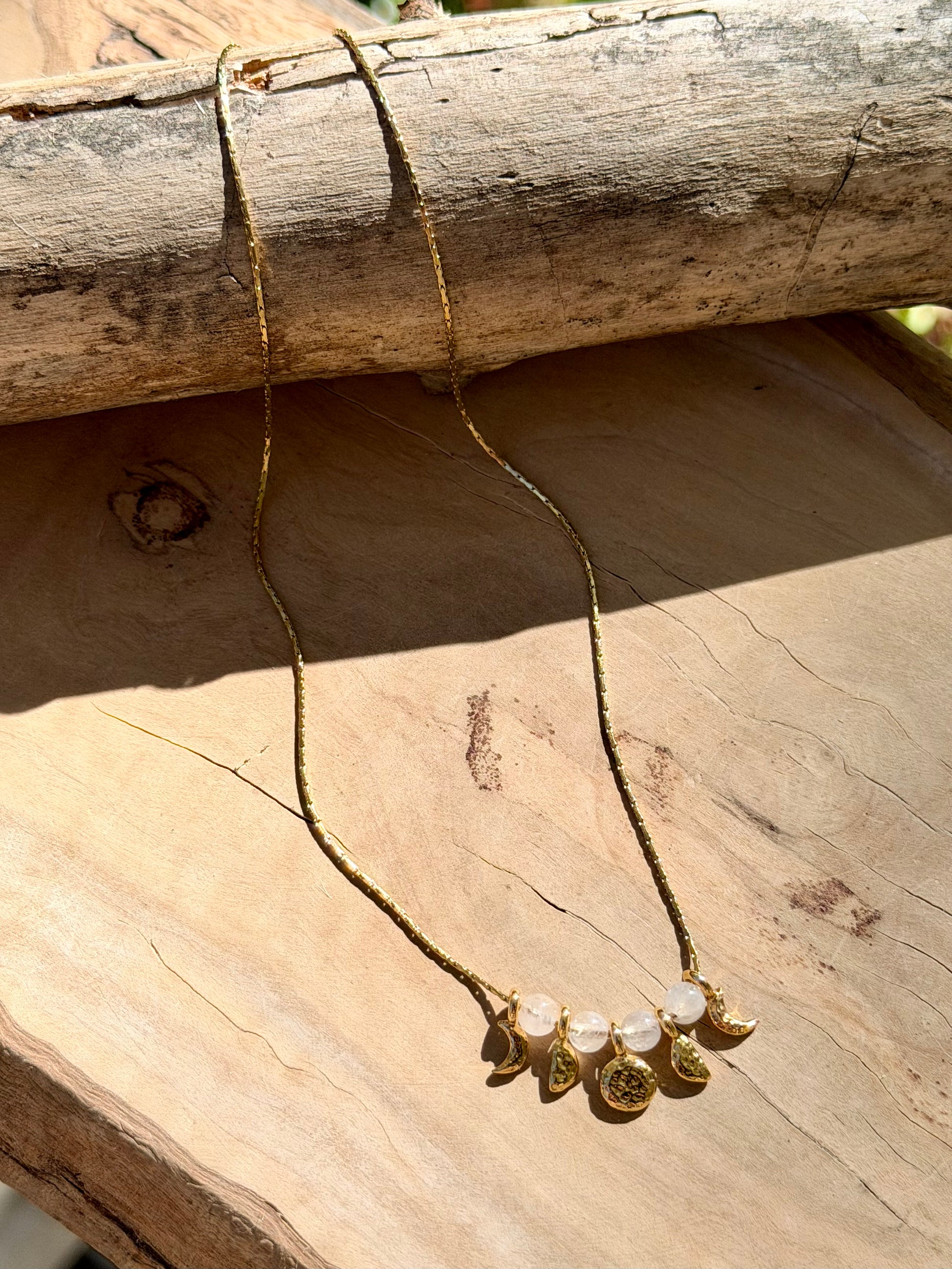 Rainbow Moonstone + Gold Moon Phases Necklace