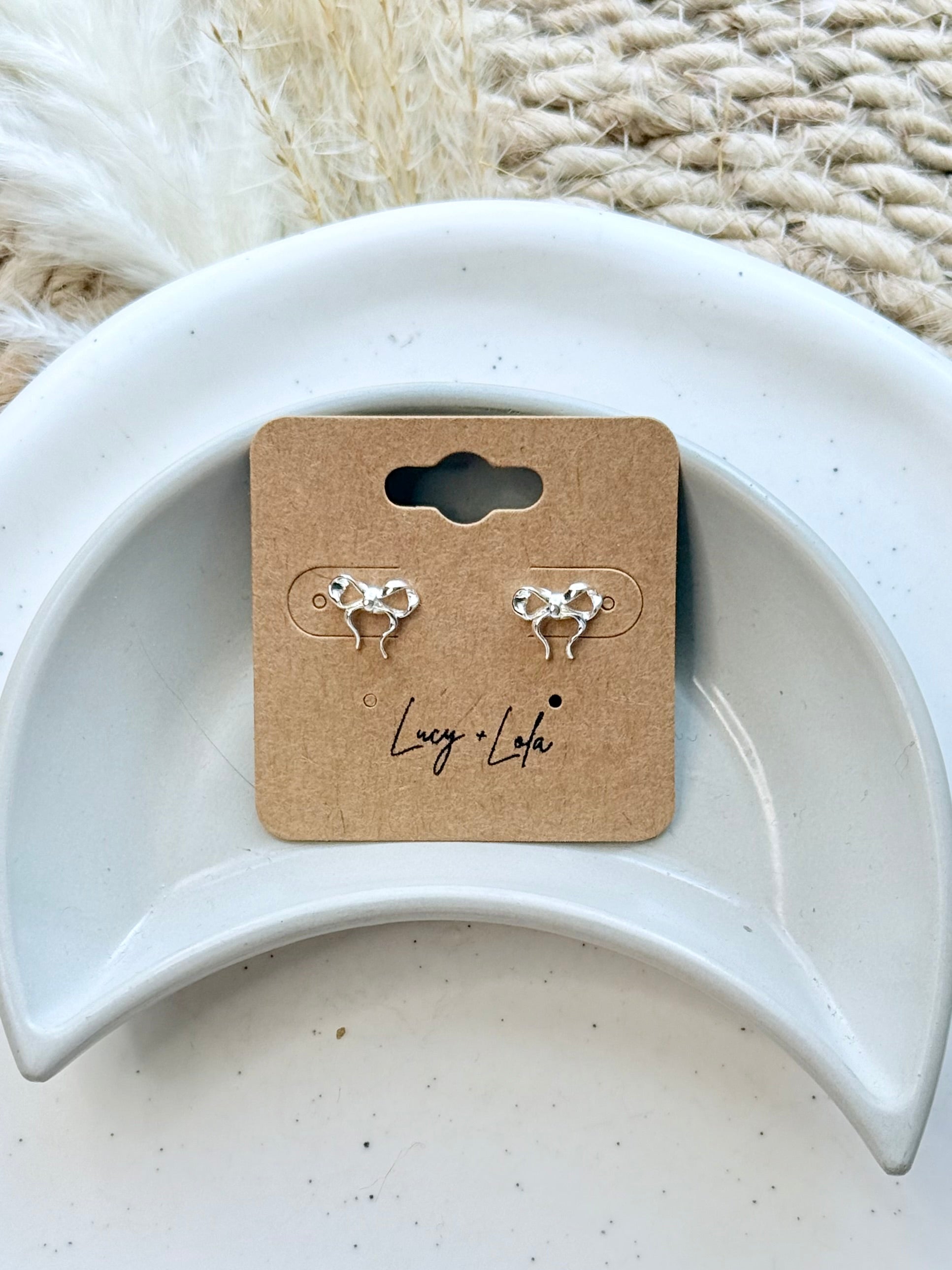 Silver Curly Bow Mini Stud Earrings