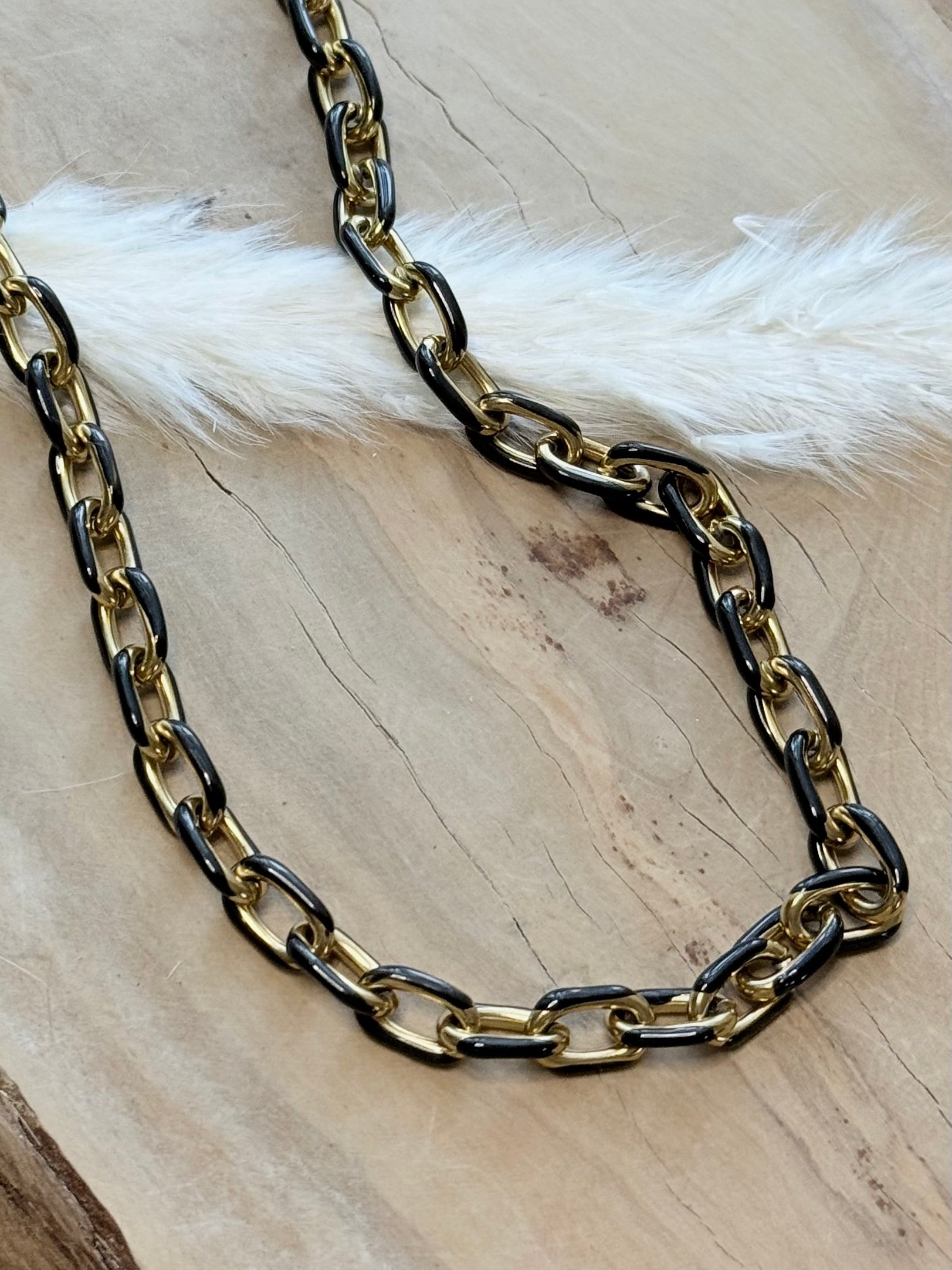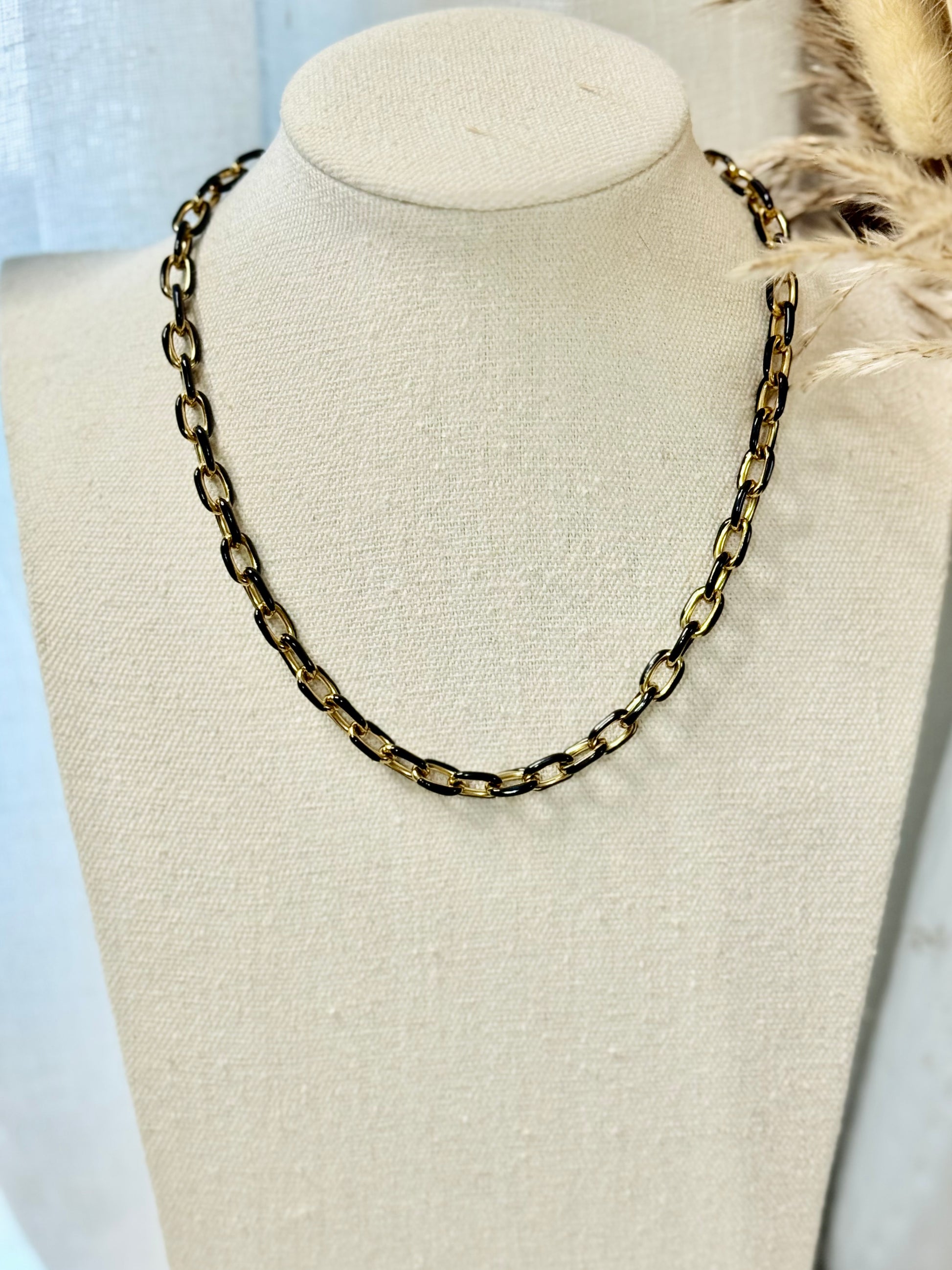 The Monica - Gold Stainless Steel + Black Link Necklace