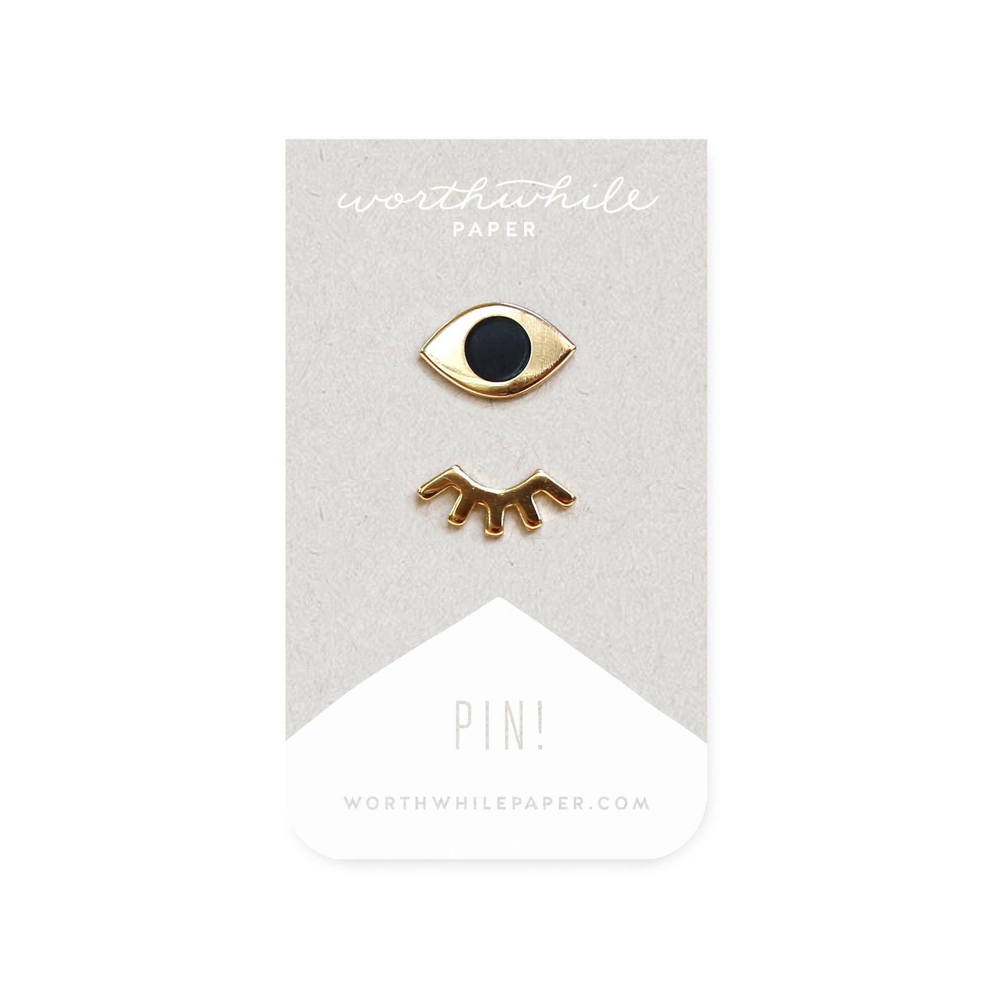 A set of two eyes, one open and one closed. Wink wink! This unique enamel pin set is ready for you to adorn your favorite jacket or bag and also makes a perfect little gift for a friend.