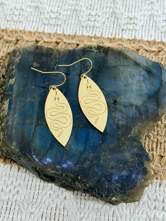 Gold Etched Snake Earrings